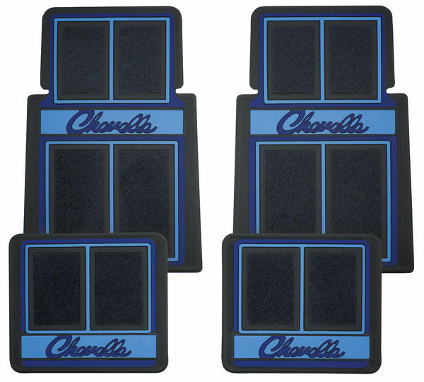 RestoParts Blue Rubber Plasticolor Floor Mat Set 1964-1973 Chevelle Stamped Logo