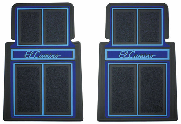 RestoParts Blue Rubber Plasticolor Floor Mat Set 1964-87 El Camino Stamped Logo