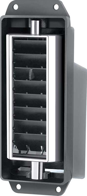 Reproduction dash side vents for 1969 Camaro models without AC. Each dash side vent features a chrome plated plastic air vent with correctly textured black plastic fins. Vent housings are manufactured in injection-molded ABS plastic as original and feature foam bushings on vent roller surfaces for smooth operation and correctly positioned mounting holes. Comes pre-packaged in OER® box.