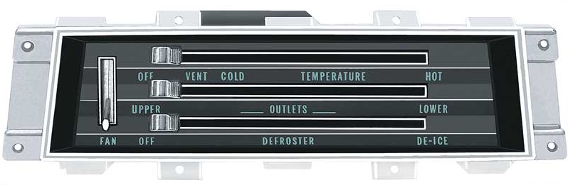 Reproduction of the original heater control assembly designed for use on 1968 Camaro and Firebird models originally equipped with factory air conditioning. Each heater control assembly is manufactured to OE specifications, pre-assembled and ready to install. Includes original style face plate with correct lettering. Includes control cables attached to each assembly. Applications: