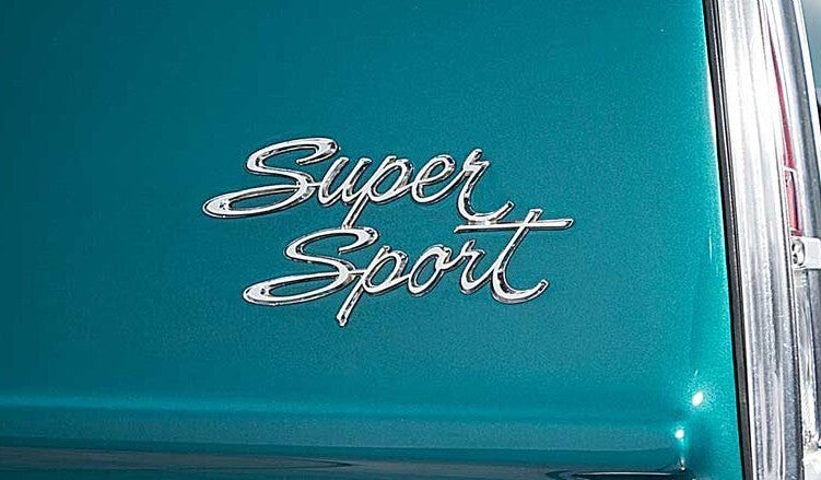 OER® reproduction of the original "Super Sport" quarter panel emblems designed for use on 1966-1967 Nova SS models. Manufactured in quality zinc die-cast metal to OE dimensions featuring a beautiful chrome finish and black edging in proper script font for an authentic appearance.