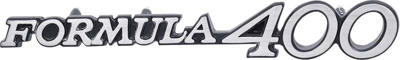 Reproduction of the original "Formula 400" front fender emblems for use with 1970-7191 Pontiac Formula Firebird models with a 400 engine. Each emblem is manufactured in die-cast zinc to original GM specifications. Includes a chrome finish with black accents that replicate the original emblem.