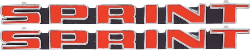Reproduction of the original "Sprint" rocker panel emblems for use with 1968-1969 Pontiac Firebird Sprint models. Each emblem is manufactured in die-cast zinc featuring correct color lettering with a black base finish.