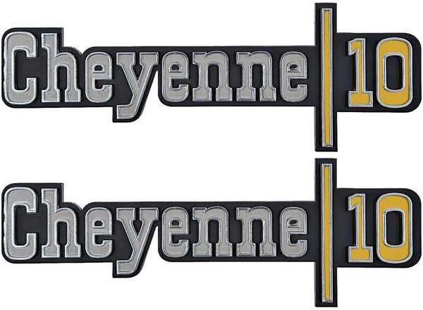 OER Front Fender "Cheyenne 10" Emblem Set 1973-1974 Chevy Pickup Trucks