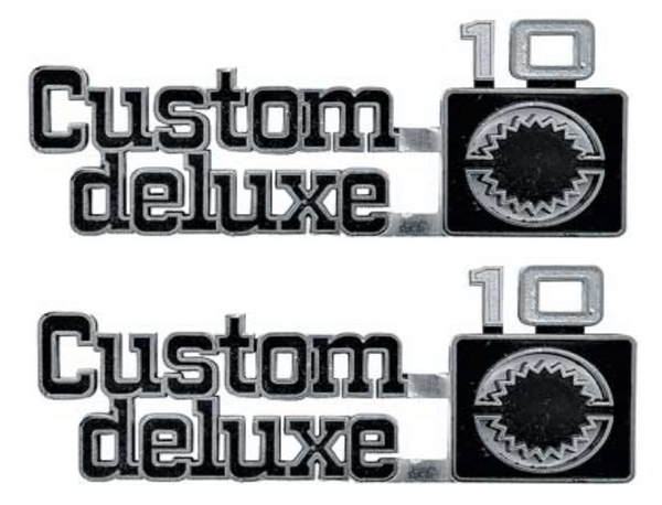 OER Front Fender "Custom Deluxe 10" Emblem Set 1975-1980 Chevy Pickup Trucks