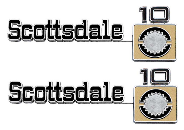 OER Front Fender "Scottsdale 10" Emblem Set 1975-1980 Chevy Pickup Trucks