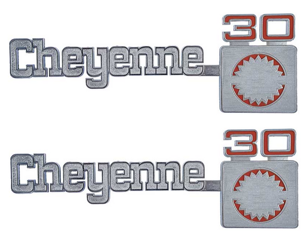 OER Front Fender "Cheyenne 30" Emblem Set 1975-1980 Chevy Pickup Trucks