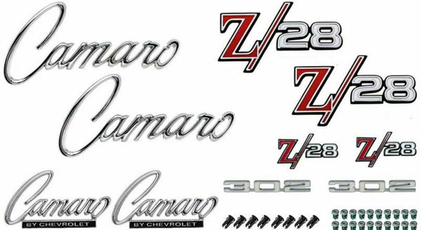 OER Complete Emblem Set 1969 Chevy Camaro 302 Engine Z28 w/o RS w/Cowl Hood