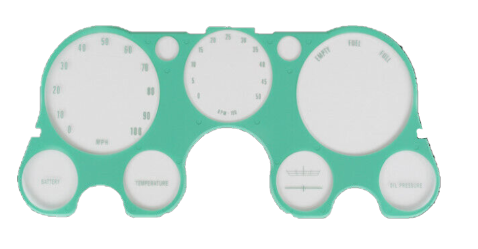 Reproduction dash instrument gauge lens for 1967-1972 Chevrolet and GMC pickup, Blazer, Jimmy, and Suburban models with gauges, with tachometer. without vacuum gauge. Each lens is manufactured to original specifications in injection molded UV acrylic offering an authentic appearance and original fitment.