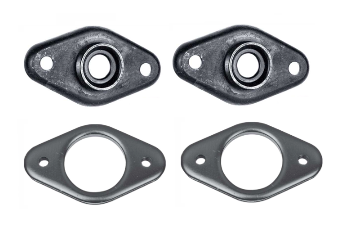 Also includes the mounting plates that are one of the most commonly rusted, damaged or accidently discarded items in the rear suspension is this rear upper shock mount plate. This plate is mounted between the upper shock bushings and bolts to the factory weld nuts above in the upper rear frame rail area. Manufactured in steel and EDP* coated.