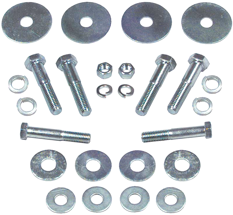 Subframe hardware kit and repair plate setdesigned for use on various 1967-1969 Camaro, Firebird, and 1968-1974 Nova, Omega, Apollo, and Ventura models as listed below. Each kit contains all the correct bolts, washers and nuts used to mount the subframe body bushings. Replaces rusted, burred, stripped, or otherwise damaged originals. Excellent for use when replacing subframe bushings.