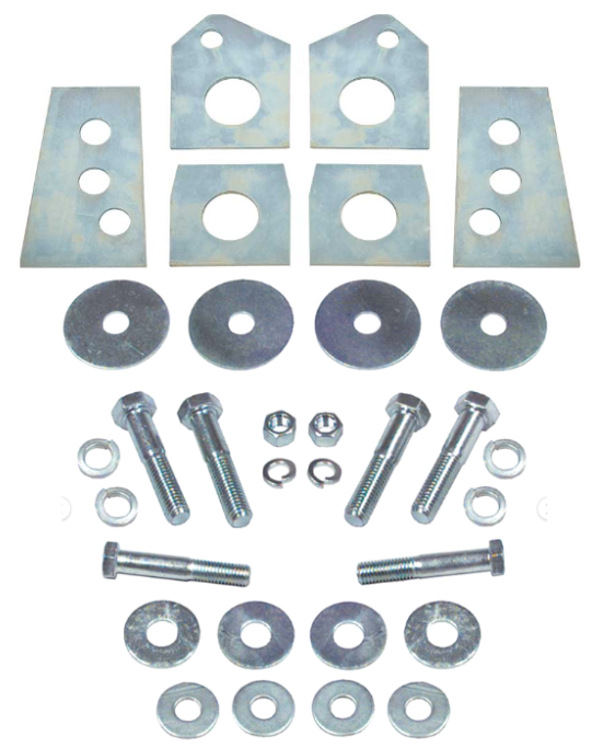 This is a replacement kit with Grade 5 hardware and A complete kit of subframe mounting plates will take care of the rotted out crucial areas where the subframe bushings mount. After years of abuse, the plates may become damaged beyond repair. You certainly don't want to replace the bushings without checking the plates. These new plates will secure the subframe and add stability to the original frame. Includes the rear subframe plates, middle frame plates and the core support plates.
