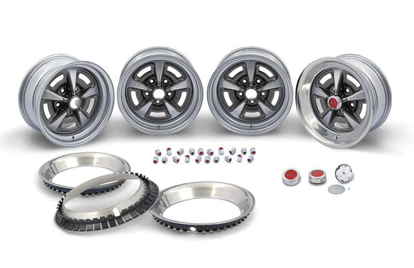 OER RDK403R 1967-72 Pontiac 15 X 7 Rally II Wheel Kit Red Center Caps and Nuts