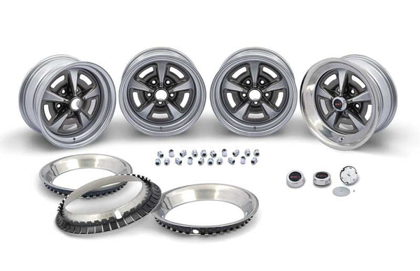 OER RDK403B 1967-72 Pontiac 15 X 7 Rally II Wheel Kit Black Center Caps and Nuts