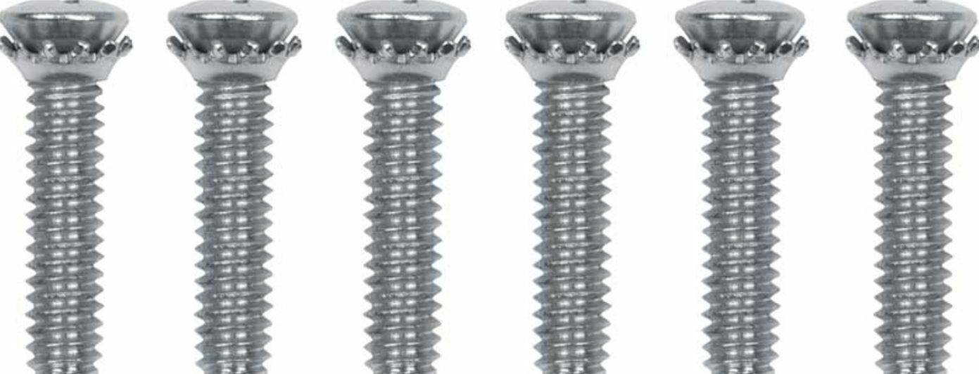 Reproduction door striker screw set for 1958-60 2 door Chevrolet models. Each set includes 6 screws. 2 sets requred for 4-door models. Used to attach striker plates # CX1874.