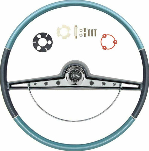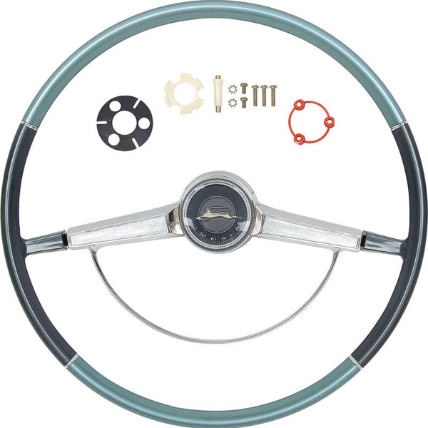 OER Two Tone Blue Steering Wheel Kit 1963 Chevy Impala With Standar Emblem