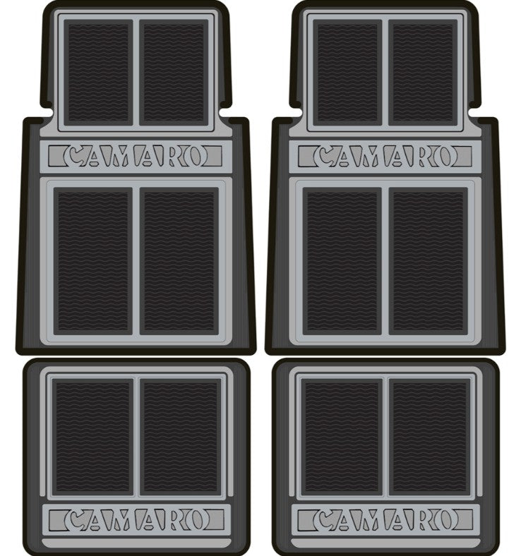 Logo: Early-style "Camaro" block lettering molded into each mat