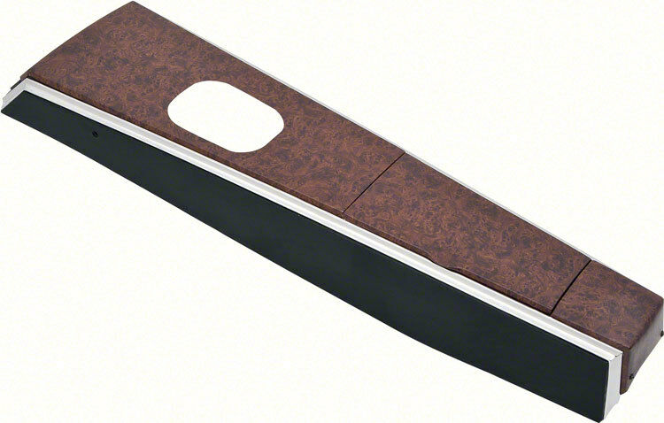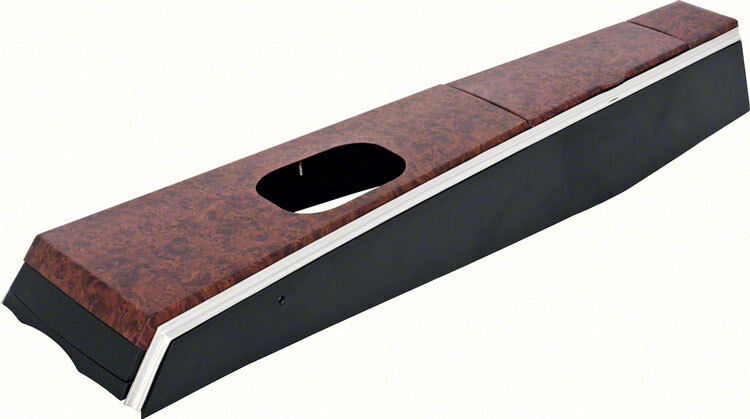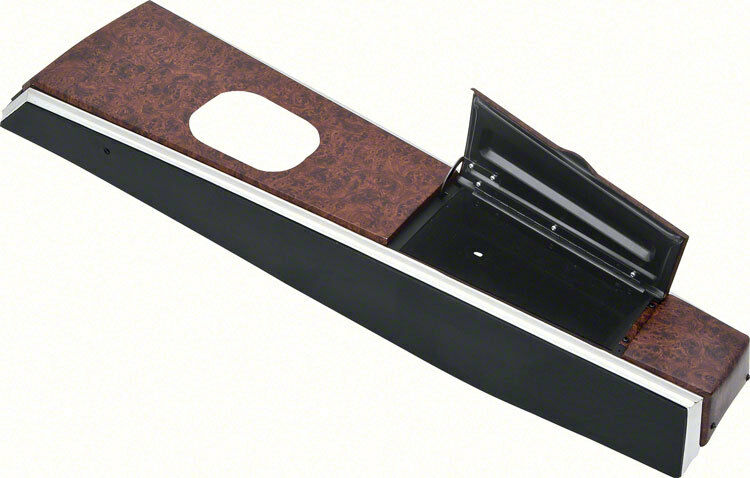 Injection molded and die-cast reproduction of the original 1967-69 Firebird console assembly. Manufactured to exact specifications including correct Burlwood design. The Firebird console assembly includes a separate wood grain metal trim overlay as originally offered. The overlay is attached to the console offering the customer an original appearance. This complete assembly includes the chrome trim and console door as shown. Console shift plate sold separately. Pre-packaged in OER box.