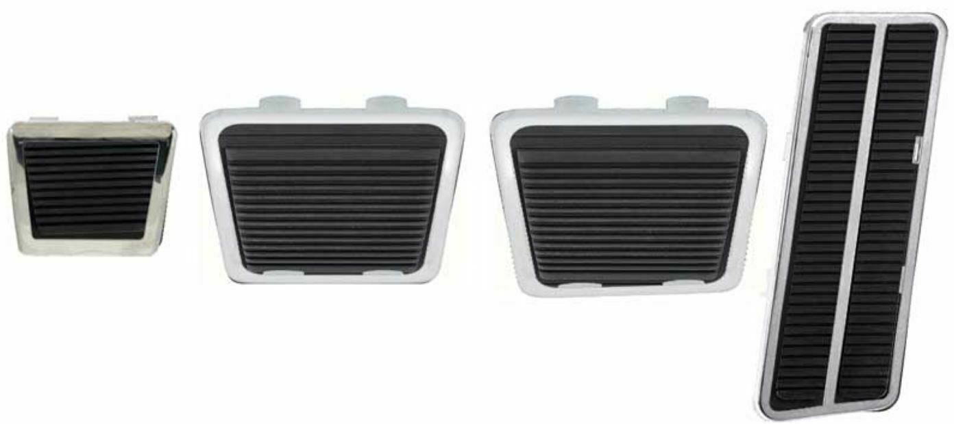 Includes the brake pad, clutch pad, accelerator pad, park brake pad and stainless trim for each pad. 8 piece set.
