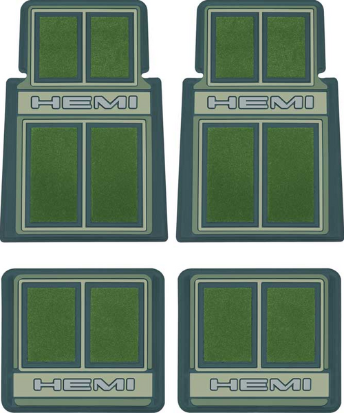OER 4 Piece Green Carpeted "Hemi" Floor Mat Set 1960-1976 Mopar Models