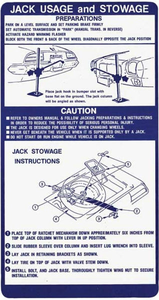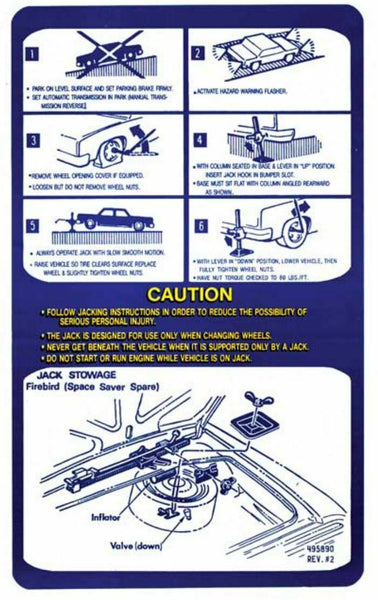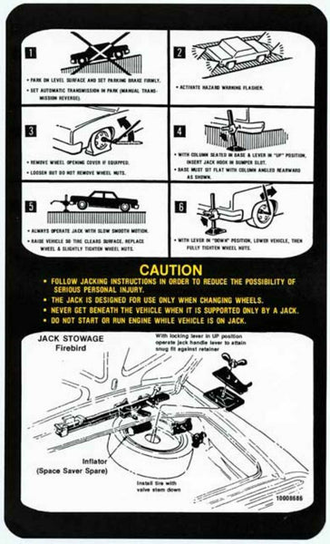 OER Trunk Lid Space Saver Jacking Instructions Decal 1967-1969 Firebird/Trans AM