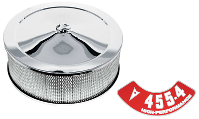 14 x 5 Chrome Air Cleaner Assembly With 455-4BBL Decal Firebird GTO Grand Prix