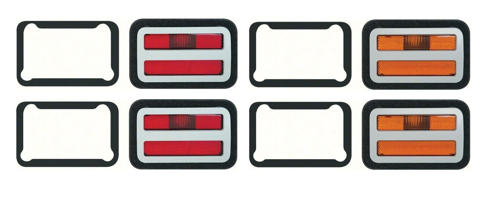 Factory-style reproduction front and rear side marker assemblies for 1971 Dodge Charger and Super Bee models. Each assembly is manufactured to factory specifications with the correct housing and proper lens color. Fits both LH and RH.