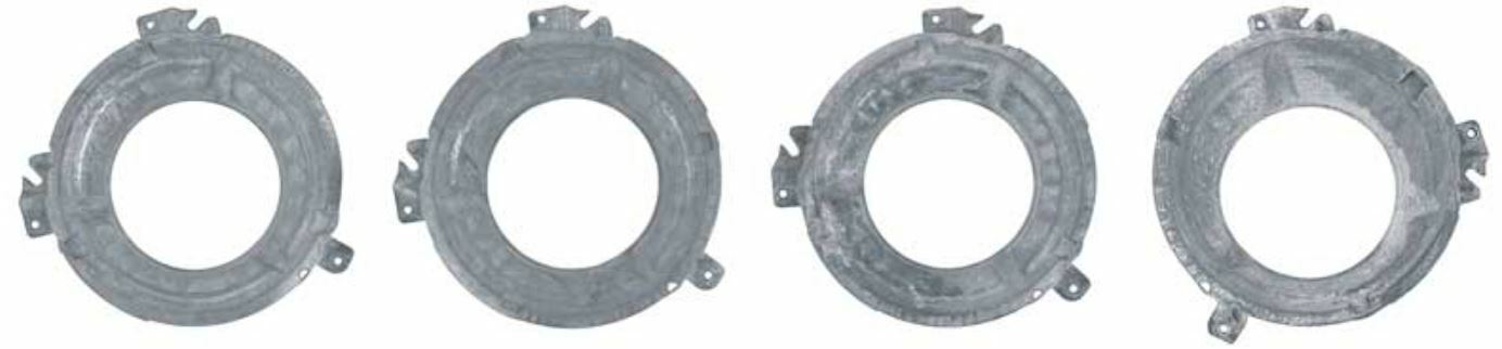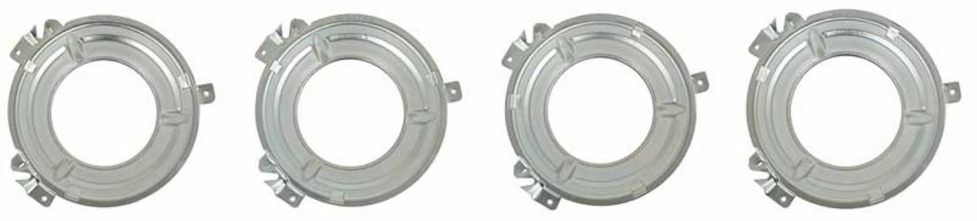OER reproduction of the 1971-74 Mopar B, C-Body headlamp bucket set for models with 4-headlamp system. Manufactured in stamped steel just like the factory Mopar item, each bucket in the set features the correct markings on the front rim.