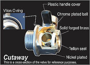 The EZ Oil Drain Valve incorporates the ball valve design with a nickel-plated body for additional protection from the elements.
