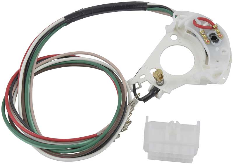 Reproduction "Final Design" turn signal switch for 1967-1971 Mopar A, B, C, & E-Body models without tilt wheel. This switch comes with metal connectors attached to the ends of the wires and includes the plastic connector for a solder and splice-free plug-in installation. This switch is modeled after the final design by Chrysler Corporation who changed the design several times over the years.