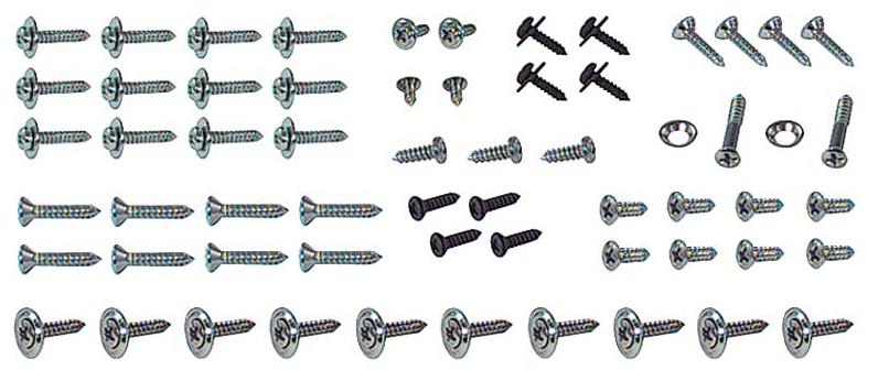 When it comes time to restore the interior and you want screws that match the original factory hardware, then this is the set you'll need. If you're spending too much time searching for and cleaning up rusty or dirty original screws and fasteners, this comprehensive set of screws will help eliminate the need for searching. Don't cut corners or waste valuable time when it comes to fasteners. Rest assured you have the correct hardware on hand when it's time to put your interior back together.