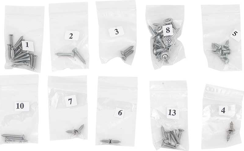 When it comes time to restore the interior and you want screws that match the original factory hardware, then this is the set you'll need. If you're spending too much time searching for and cleaning up rusty or dirty original screws and fasteners, this comprehensive set of screws will help eliminate the need for searching. Don't cut corners or waste valuable time when it comes to fasteners. Rest assured you have the correct hardware on hand when it's time to put your interior back together.
