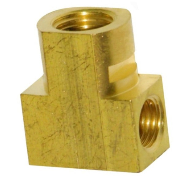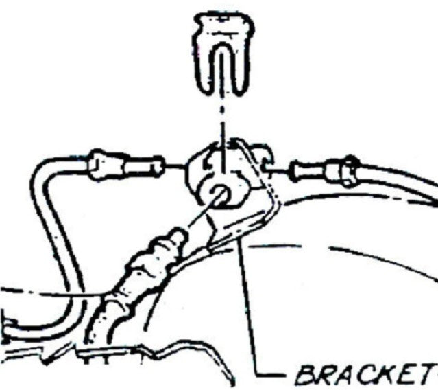 This tee is often thrown away with the hose. This tee mounts to the hose and the hose slips through the frame bracket and is clipped on the back side of the hose. This tee has a special size of 7/16-20 to fit the brake hose, so no substitution can be made on this part. This solves countless installation problems where the axle lines hook to the original hose. One tee is used per car. This is exact to NOS factory original in every detail, reproduced by Inline Tube.