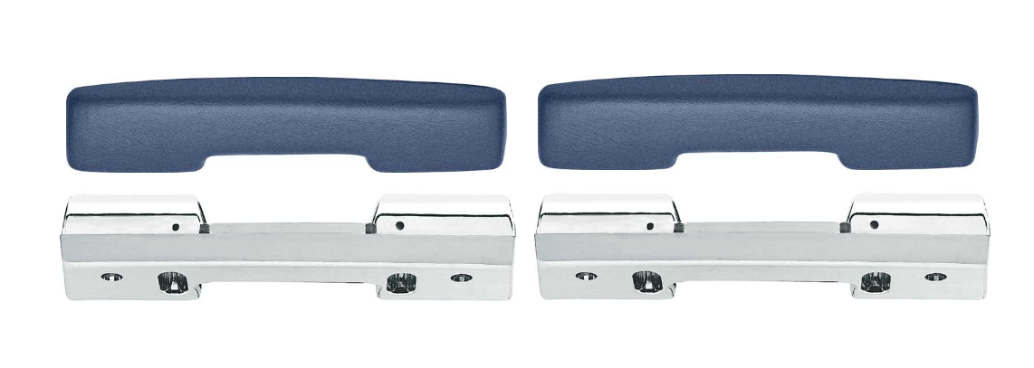 Replace your missing, cracked or broken arm rest pads and bases with this new reproduction front arm rest and base kit from OER®