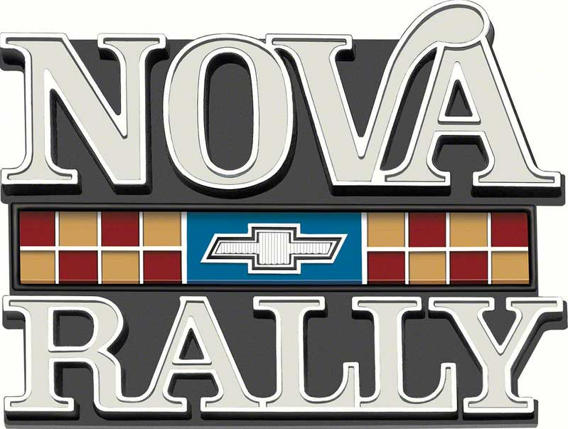 Reproduction of the original "Nova Rally" front fender emblem for 1977-1979 Chevrolet Nova models with the optional "Rally" package. Manufactured in zinc die-cast metal to exact factory specifications replicating the original emblem exactly. Features the "Nova Rally" lettering with a flag and Bow Tie in correct coloration. Installation hardware included.