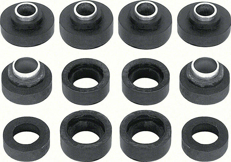 Replacing the original bushings with OER® rubber reproductions is a sure fire way of maintaining originality and mounting the subframe exactly the way the factory intended. Each pre-packaged kit contains all shouldered rubber bushings and biscuits. Each body mount is produced using correct compression molded S.B.R. with steel sleeve inserts where required.