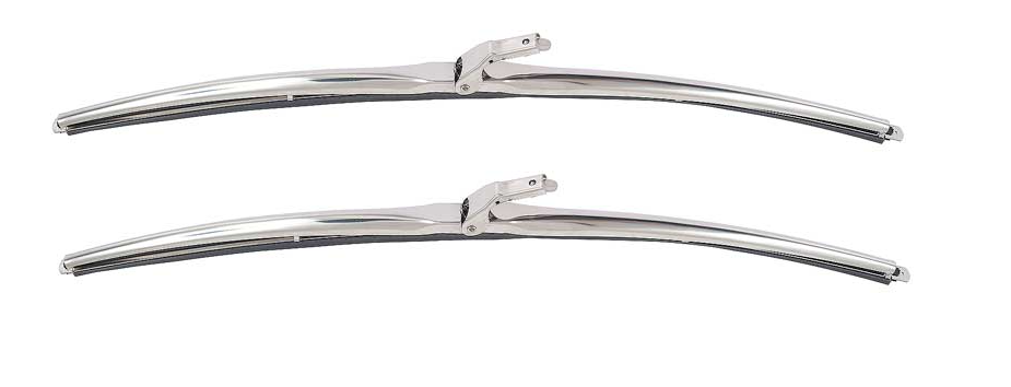 Reproduction 16" wiper blade assembly manufactured to factory specifications, featuring a bright polished stainless steel finish and premium wiper insert.