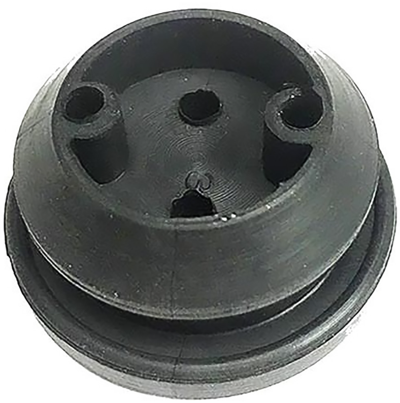 An important grommet that prevents metal to metal contact between the main 4 control lines as they pass through the firewall. The two tall holes secure the choke and throttle cables. The two short holes secure the temperature gauge line and the oil line.