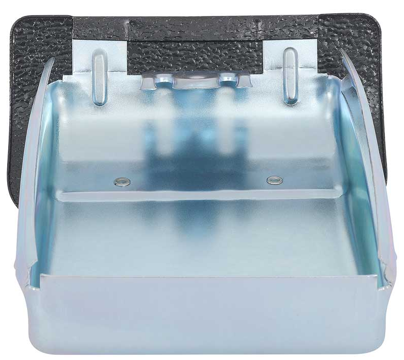 Reproduction of the original center dash ash tray unit designed for use with 1967 Camaro models. The ash tray is manufactured in stamped aluminum to correct dimensions and features a pebble grain face plate with a cigarette receiver.
