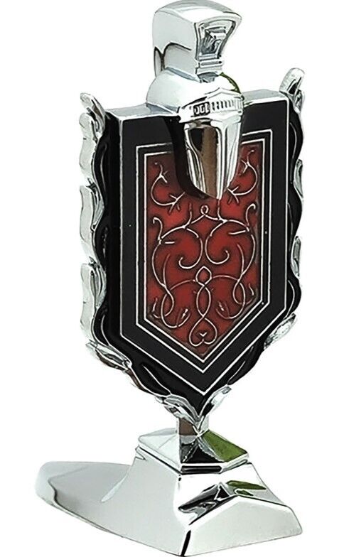 Reproduction Monte Carlo hood ornament assembly for the front end on 1978-1980 Monte Carlo models. This ornament mounts to the front header panel of the vehicle. Each die-cast ornament assembly features chrome plated Corinthian helmet with Knight's Crest logo in chrome, red and black. Each ornament is sealed in clear epoxy for an original factory appearance.