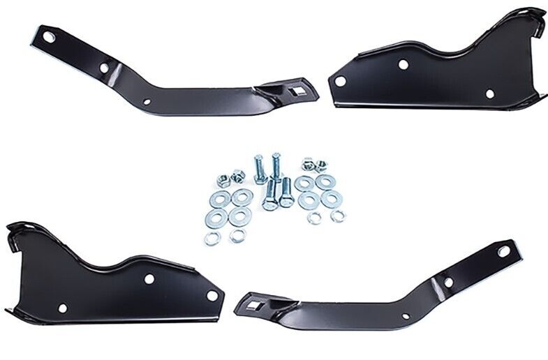 Reproduction 4-piece rear bumper bracket set for 1964-1972 Ford F100, F250, and F350 StyleSide (Fleetside) Pickup Trucks. This set includes both driver and passenger side brackets and hardware. Replaces Ford part#s C4TZ-17787-A and C4TZ-17788-A.