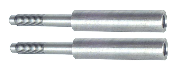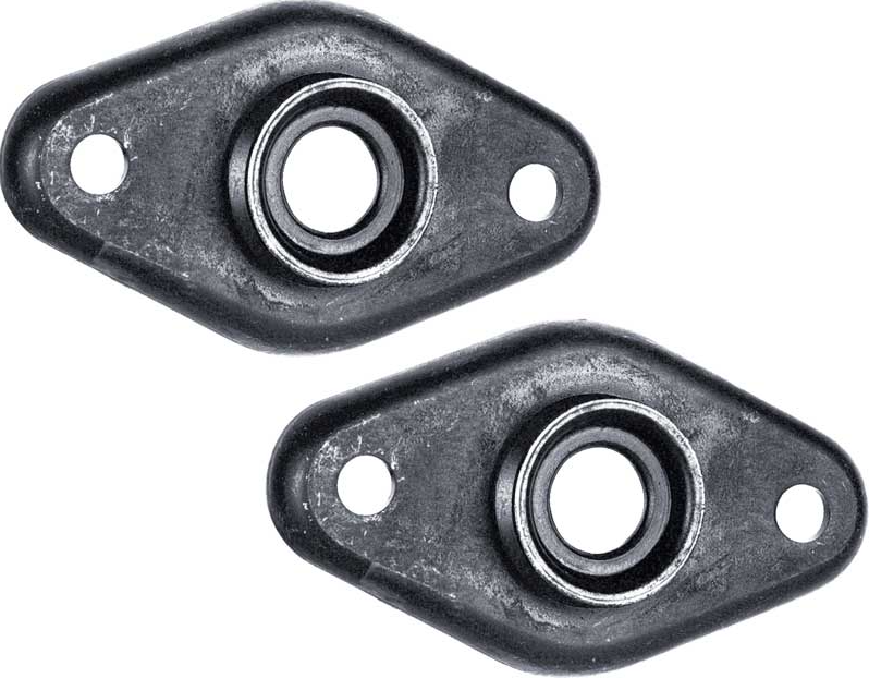 One of the most commonly rusted, damaged or accidently discarded items in the rear suspension is this rear upper shock mount plate. This plate is mounted between the upper shock bushings and bolts to the factory weld nuts above in the upper rear frame rail area. Also included is the rear shock extensions with fine thread. These extend the rear shocks 2" allowing the shocks to reach the mount on the body. For use on mono to multi-leaf conversions