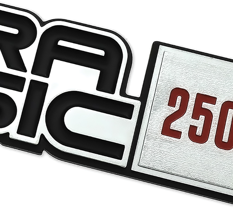 Reproduction "Sierra Classic 2500" emblem that mounts to the front fender of various 3/4 ton 1981-1986 GMC C/K and 1987-1989 GMC R/V truck and SUV models. Manufactured in injection molded plastic with a simulated brushed stainless steel appearance and featuring red and black painted accents as original. Includes ABS plastic backing gasket. Mounting nuts are sold separately. Replaces GM 's # 14051862, 14056465.