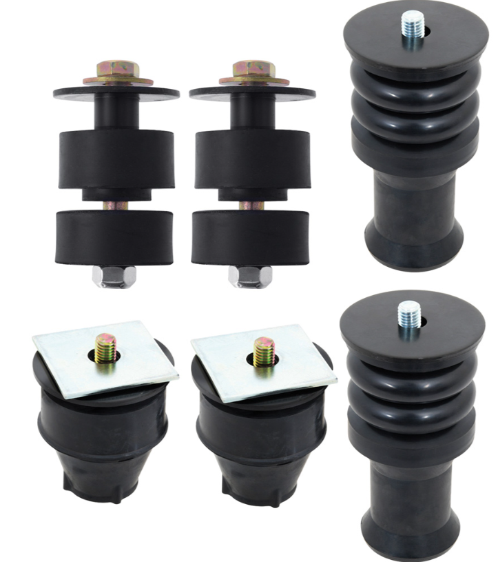 Reproduction body mounting set for 1973-190 Chevrolet/GMC 3/4 ton 2wd standard pickup. Each 28-piece kit includes radiator core support bushings, cab mounting bushings and related hardware.