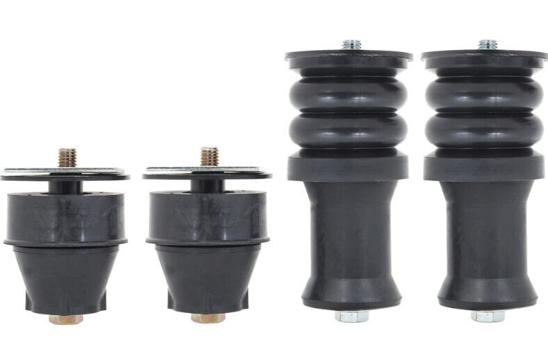 Reproduction of the original front and rear cab mount bushing set for 1973-1980 Chevrolet and GMC 1/2 ton 4WD or 3/4 ton Pickup models. Each 20-piece bushing set includes upper and lower bushing, bolts and spacers/washers.