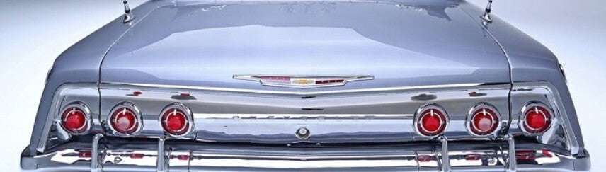 Trim Parts reproduction Bow Tie trunk and hood emblems for the front and rear sections on standard Impala and full size models. This injection molded and die-cast reproduction is manufactured to exact factory specifications and include correct colors and design for an authentic appearance. Includes the die-cast chrome base and the injection molded acrylic emblem inserts.