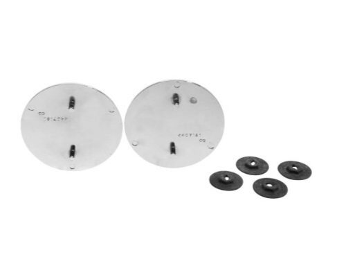 Correct reproduction of the original interior door panel emblems for use with 1964 Chevrolet Impala SS models. Each emblem is manufactured in die-cast featuring a red "SS" outlined in chrome on a black background circled with a chrome border. Includes fasteners.