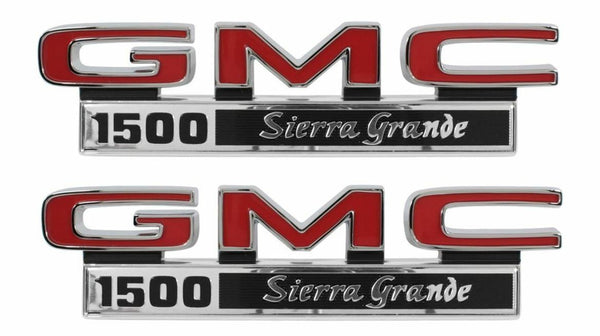 Trim Parts 9834 1971-1972 GMC Truck Fender Emblem Set 2500 Sierra Grande USA