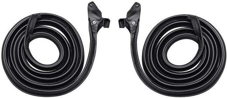 Reproduction door frame weatherstrip set for Chevrolet Impala and other GM Full Size 2-door hardtop and convertible models. This reproduction is designed to replace the original exactly featuring the correct molded ends and the same configuration as original GM seals. Replacing the original worn out or cracked weatherstrip will create a weather-tight seal to keep water and other elements out of your vehicle's passenger compartment when the door is closed.