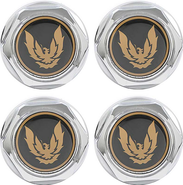 OER Chrome With Gold Bird GTA Wheel Center Cap Set 1982-1992 Firebird Trans AM